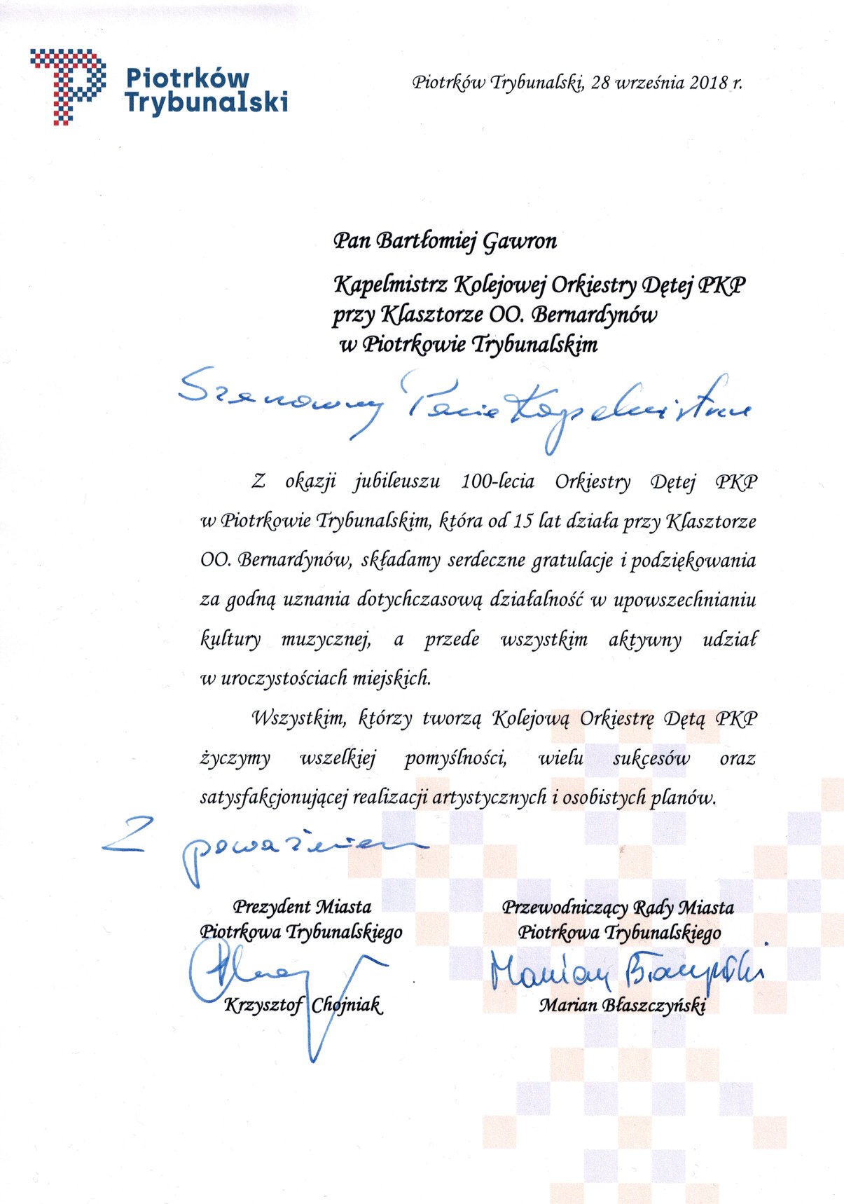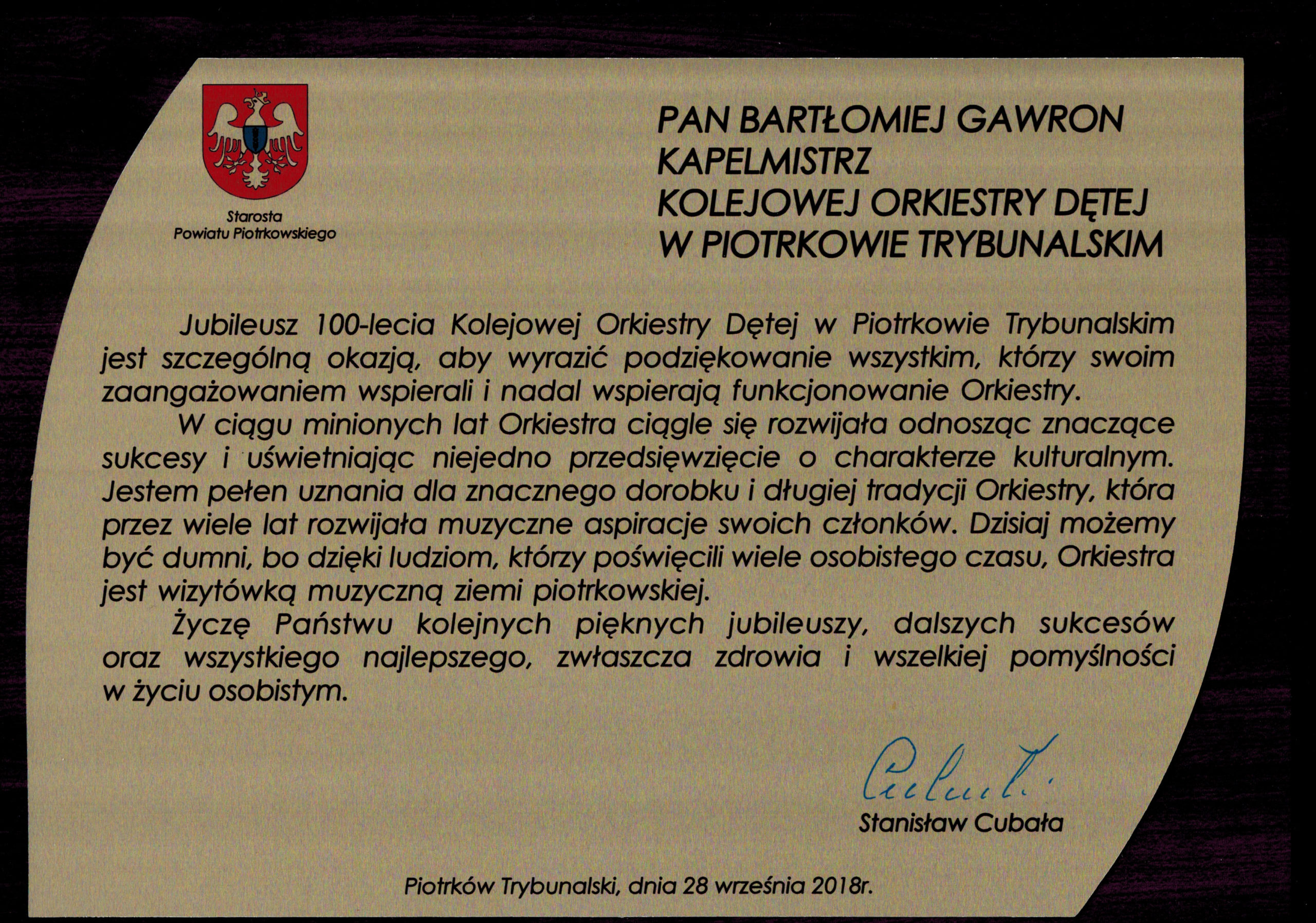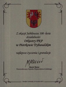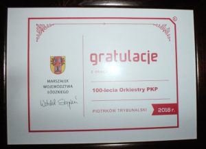 100-lecie obchodziła Kolejowa Orkiestra Dęta PKP w Piotrkowie Trybunalskim. Z tej okazji na dziedzińcu Centrum idei „Ku Demokracji” odbył się koncert galowy. Przybliżono historię orkiestry, były medale i odznaczenia, a posłuchać można było muzyki marszowej, klasycznej, folku. Gościem specjalnym był Jan Łaski.